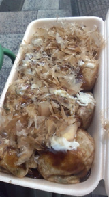 ※3)チーズたこ焼きを頼んだのにトッピングの説明をされたので不思議に思っていたら、おばちゃんに聞き間違えられてた。隣の兄さんが途中で訂正してくれたおかげでチーズたこ焼きにありつけました。