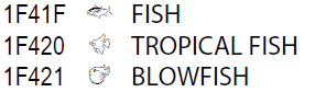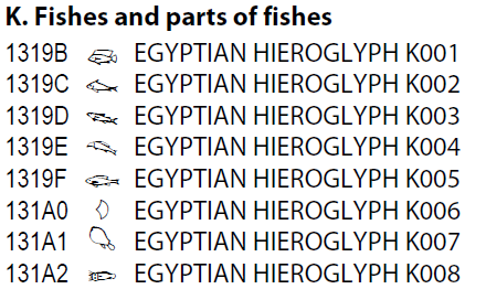というか、魚については元からある Egyptian Hieroglyphs のほうがバリエーション豊かですね。