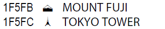 1F4A9 とかなんだよと思いつつ、他にどんなのがあるのかなーと Miscellaneous Symbols and Pictographs (P1255~1264、1F300~1F5FF) を眺めてみる。