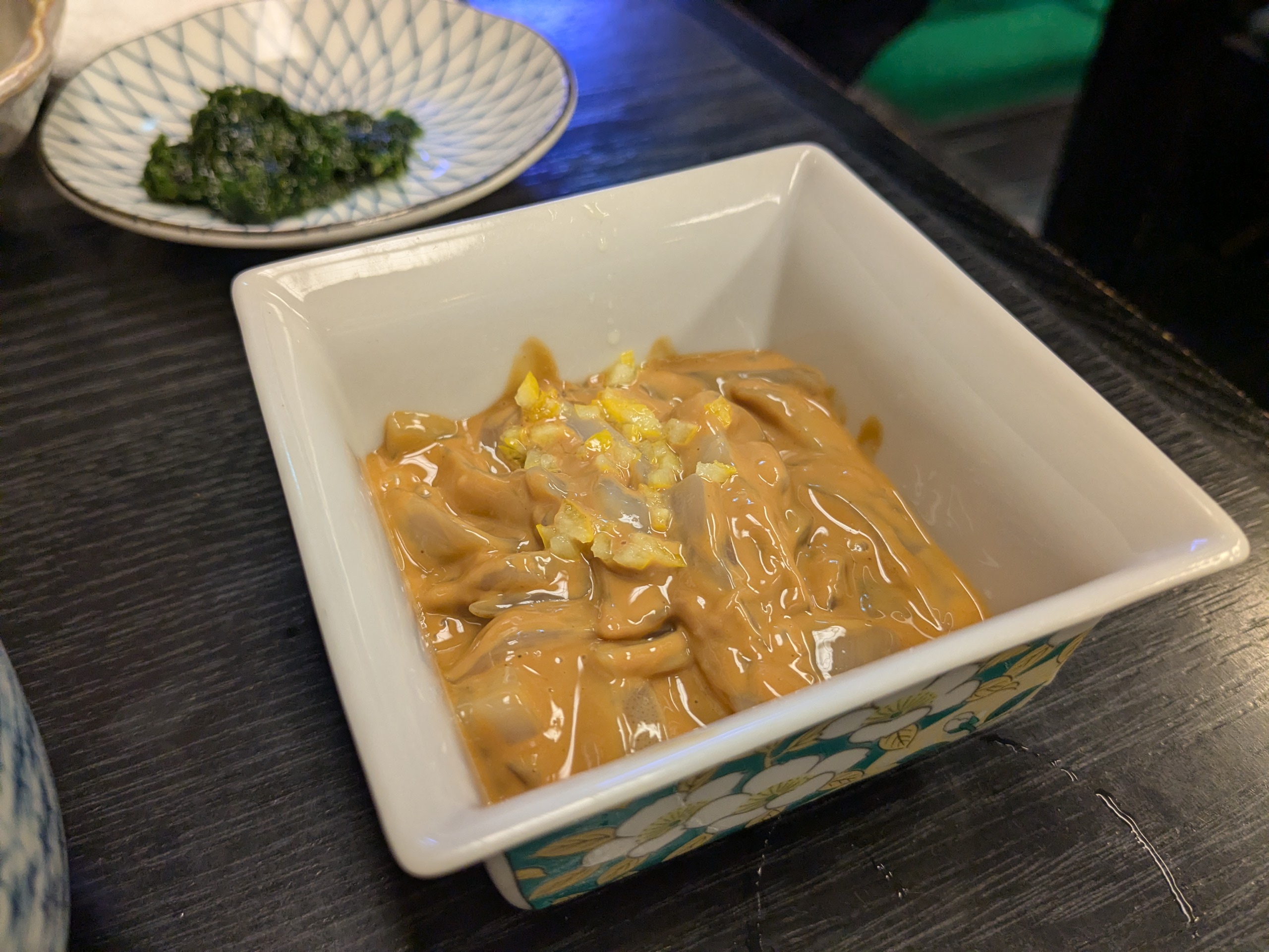青のり酢に自家製の塩辛。