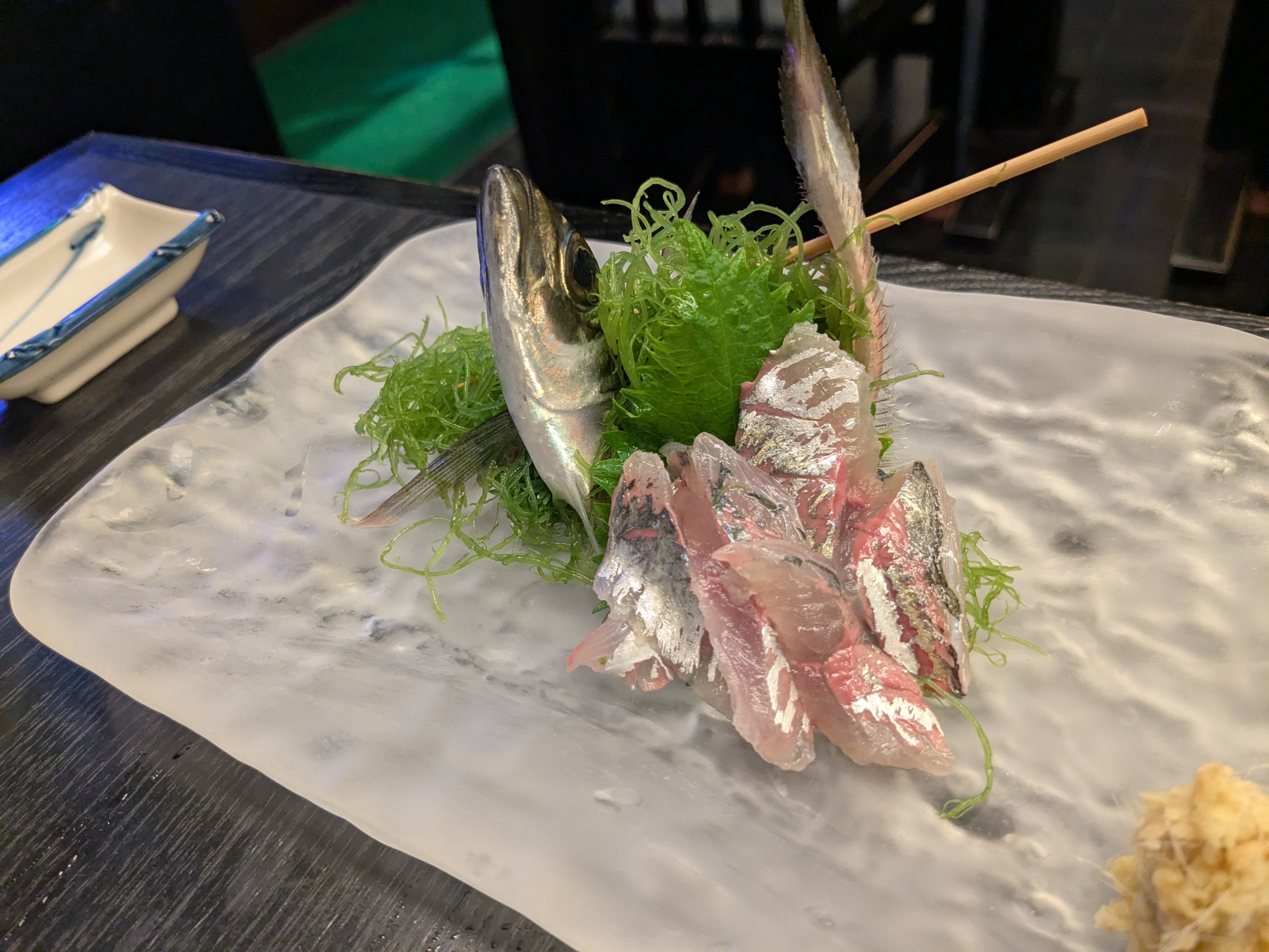 茄子焼きに活アジ刺。