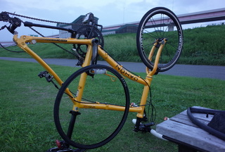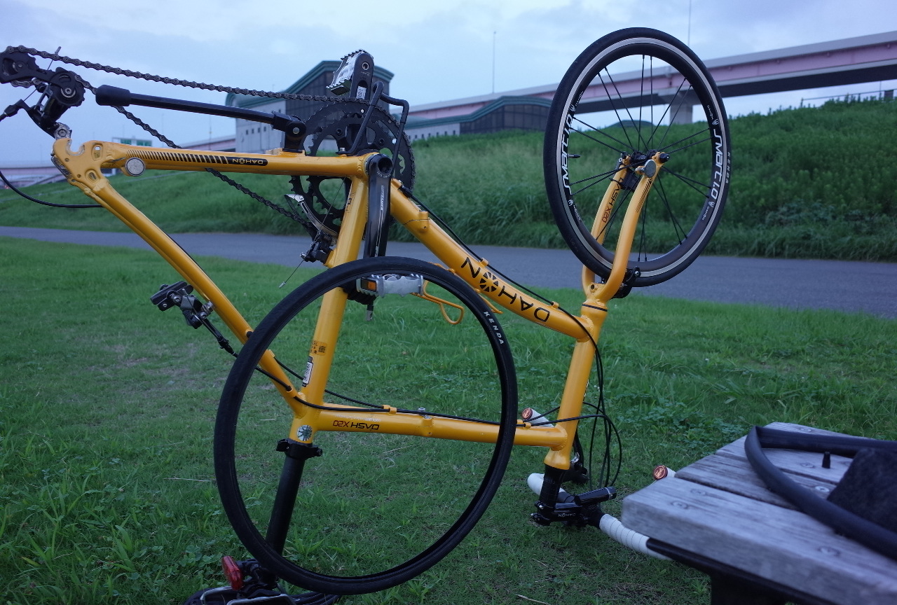 雲行きが怪しいので短めで切り上げたところどうも自転車の様子がおかしい。