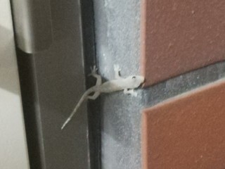 帰宅したらドアのとこにヤモリいた。