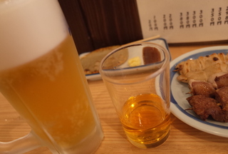 電気ブランがあったので注文。チェイサーにビール。