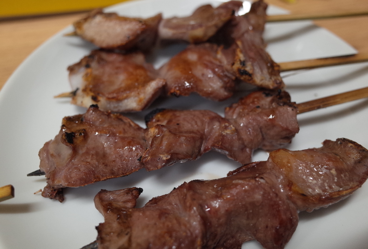 串はハツ、タン、テッポー、ガツを注文。