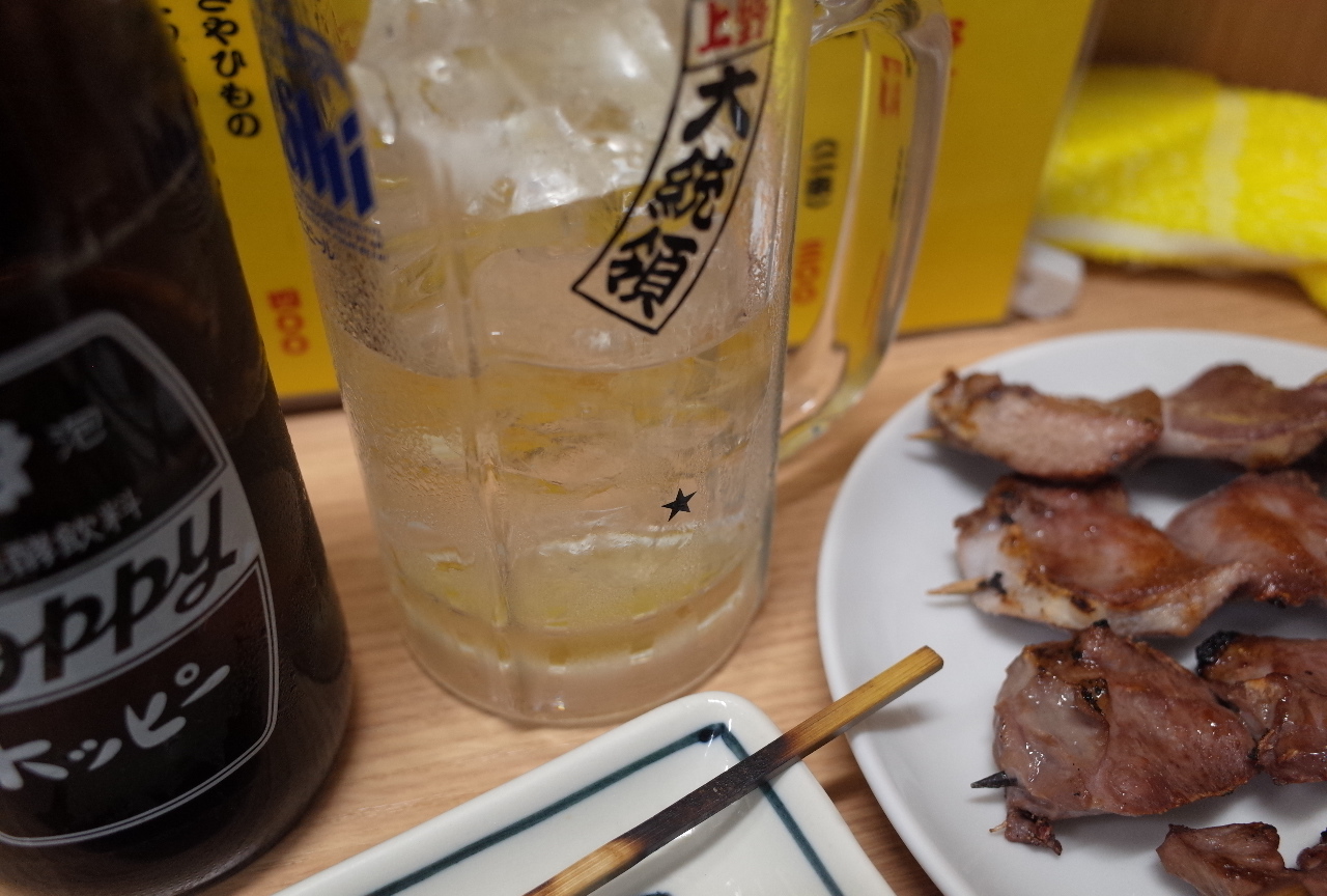 串はタン、ハツ、しし唐を頼んで、待っている間にホッピーを追加注文。